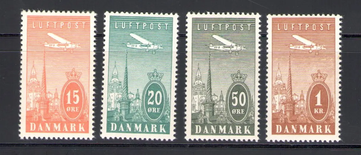 1934 DÄNEMARK, Luftpost, Flugzeug im Flug, Nr. 6/10 - 4 Werte MNH***, neuer Original- und Vollgummi.