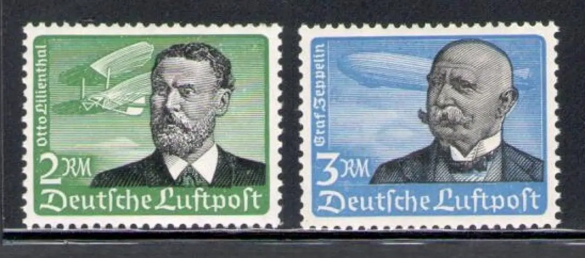 1934 Germania Reich, Yvert Nr. 52/53, postfrisch** Adler im Flug, Bildnisse von Lilienthal und von Zeppelin Einheitskatalog Euro 340 - Lot M