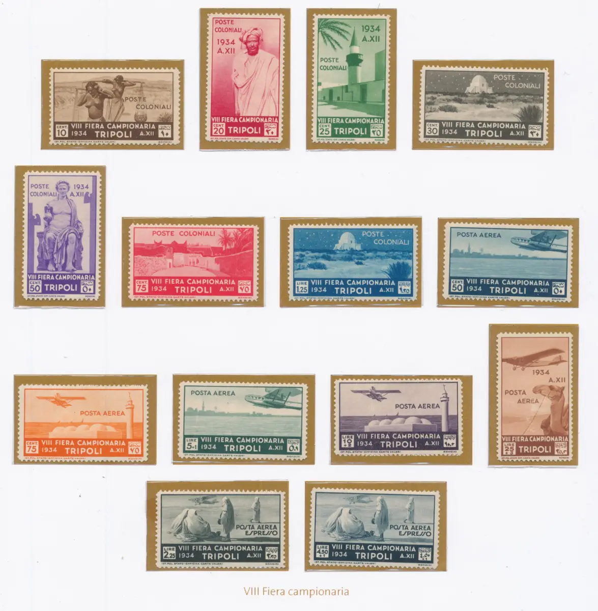1934 LIBYEN, 8 Messe von Tripolis Nr. 125/31 + Luftpost A14/A20 - MH*