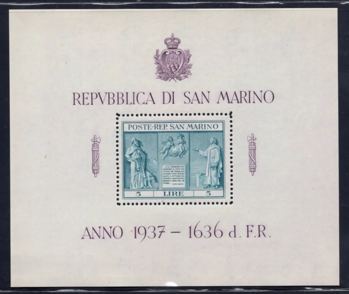 MNH - Vollgummi - - 1937 Unabhängigkeit 5 Lire erster Zettel von San Marino (Sachsen Nr. 1) sehr gut, perfekt mit Vollgummi Cod. 2584 / WEB