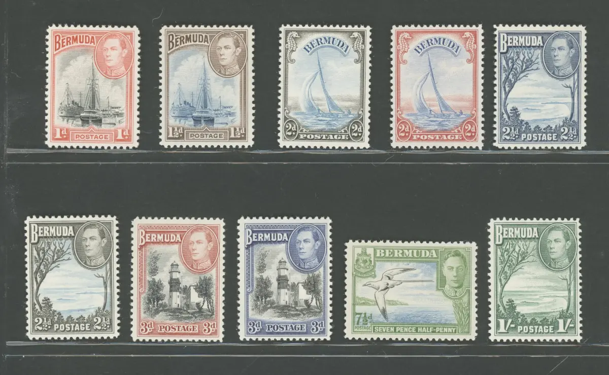 1938-52 BERMUDA, Stanley Gibbons Nr. 110-115 - Serie von 10 Werten - MNH ** STANLEY GIBBONS 150 - Lot 301-6 - Lot 256-35