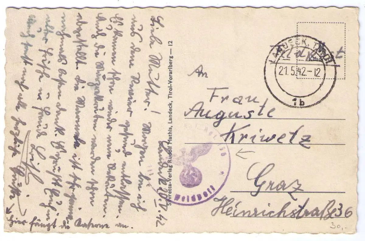 1942 AK Landeck (Tirol Vorarlberg) - adressiert nach Graz
