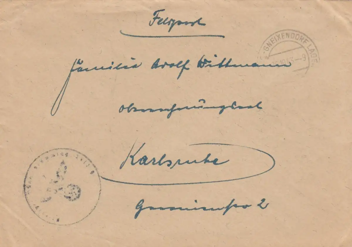 1943 Feldpost Lager Gneixendorf, Stalag XVII B nach Karlsruhe