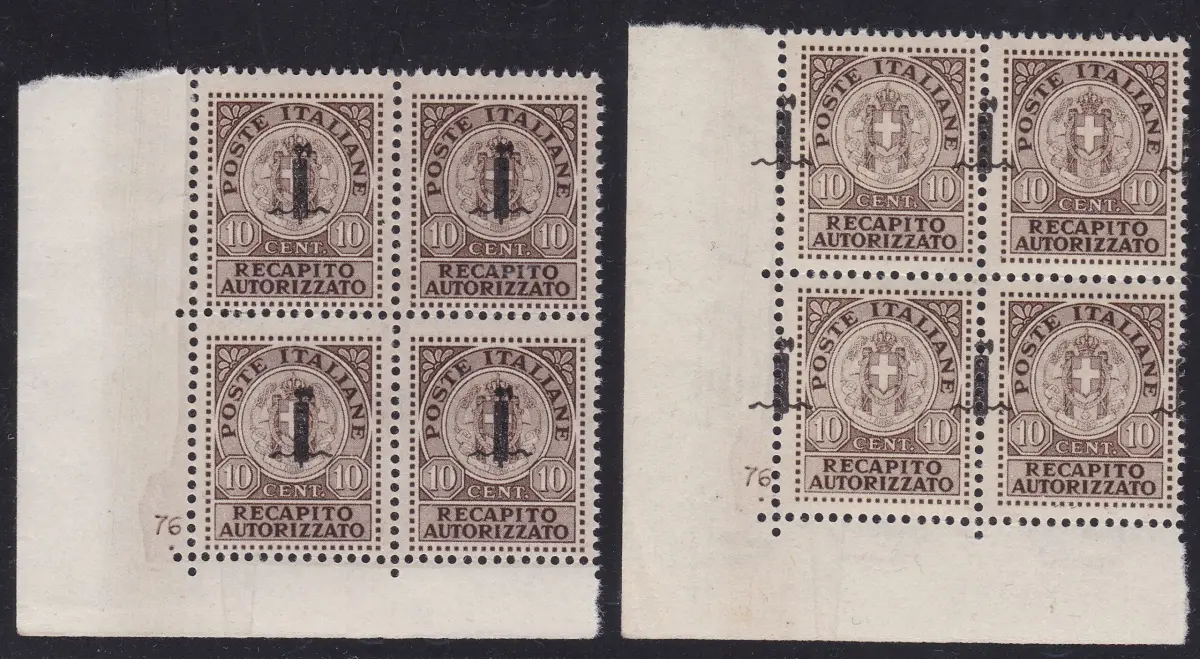 1944 Italienische Sozialrepublik, Autorisierte Zustellung 4+4b MNH/** BLÖCKE MIT TISCHNUMMER Typ von 1930 überdruckt und Sorte 'Überdruck stark nach links verschoben' Signatur Raybaudi Sächsischer Katalog Euro 200 ++ Lot 83