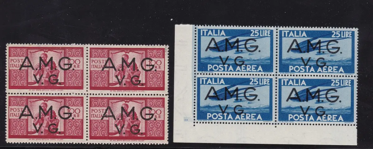 1945-47 Anglo-Amerikanische Verwaltung von JULISCH VENEDIG Komplette Sammlung 31 Werte in Blöcken von 4 MNH/** VOLLGUMMI Sächsischer Katalog C.1 Euro 1.000/2.000 zentriert Lot 82