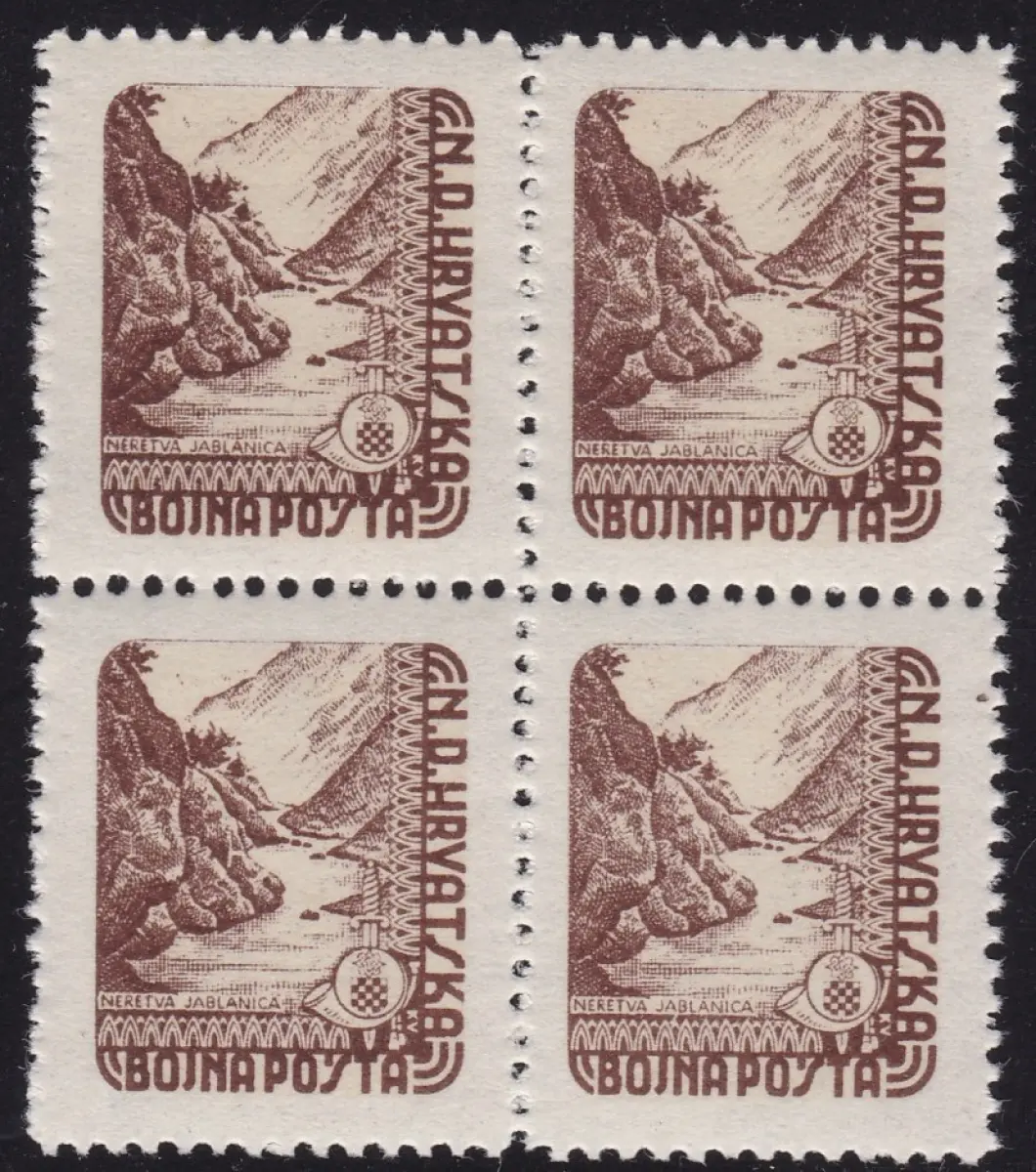 1945 KROATIEN / CROATIA / HRVATSKA, Militärpost Nr. 2 VIERTEL MIT ABZIEHBILD MNH / ** Signiert Sorani Landschaft der Neretva AA / beige Album Lot 15