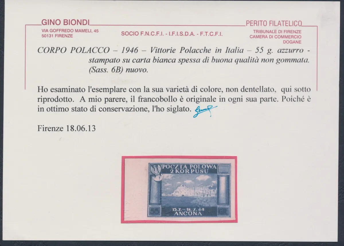 1946 POLNISCHES KORPS, Nr. 15 55 g. rotbraun NEU OHNE GUMMI (*) Zertifikat Blond Sächsischer Katalog Euro 1.000 Lot 81