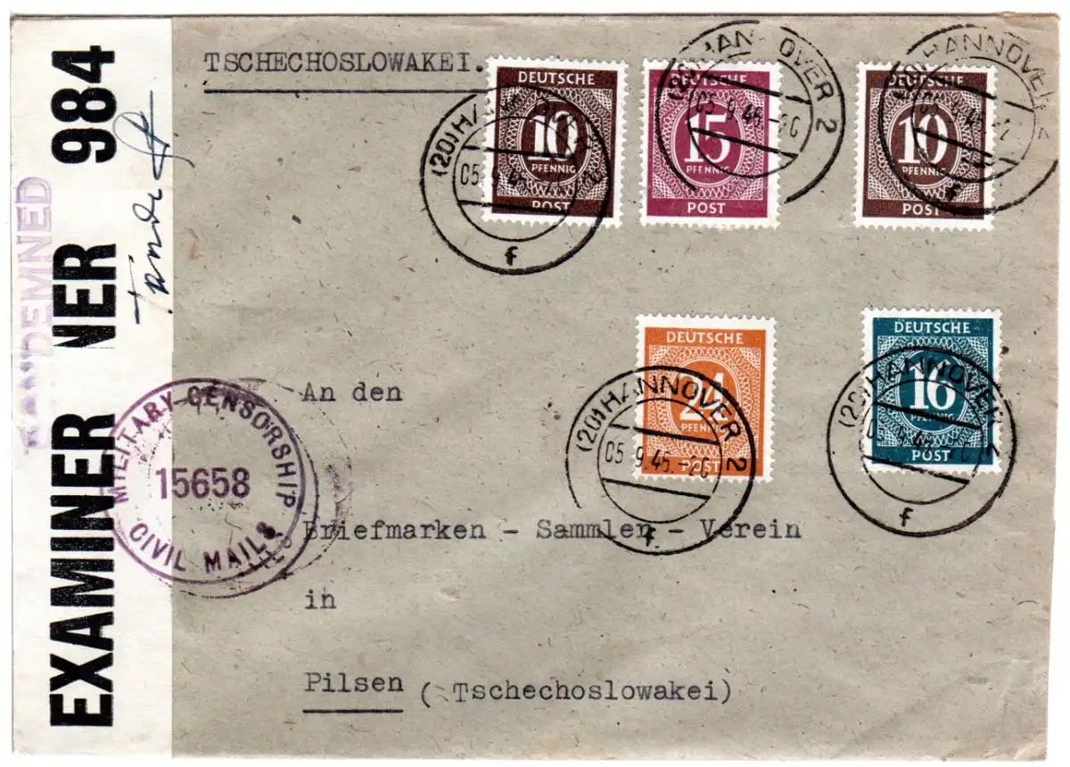 1946, selt. Zensur-L1 CONDEMNED auf portorichtigem Brief v. Hannover i.d. CSSR