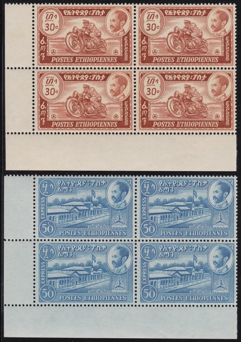 1947 ÄTHIOPIEN - YT Exp Nr. 1/2 2 Werte MNH/** VIERTEL BLATTECKE OHNE FILIGRAN Verschiedene Themen Yvert Tellier Euro 70 A/M Lot 87