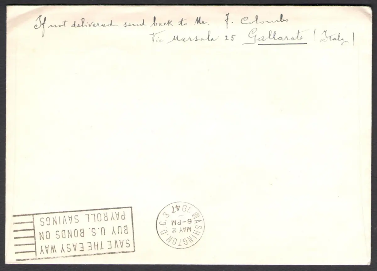 1947 SCHWEIZ,, 2.05.1947 Luftpost auf Umschlag Nr. A41 - Erster Flug Schweiz-USA