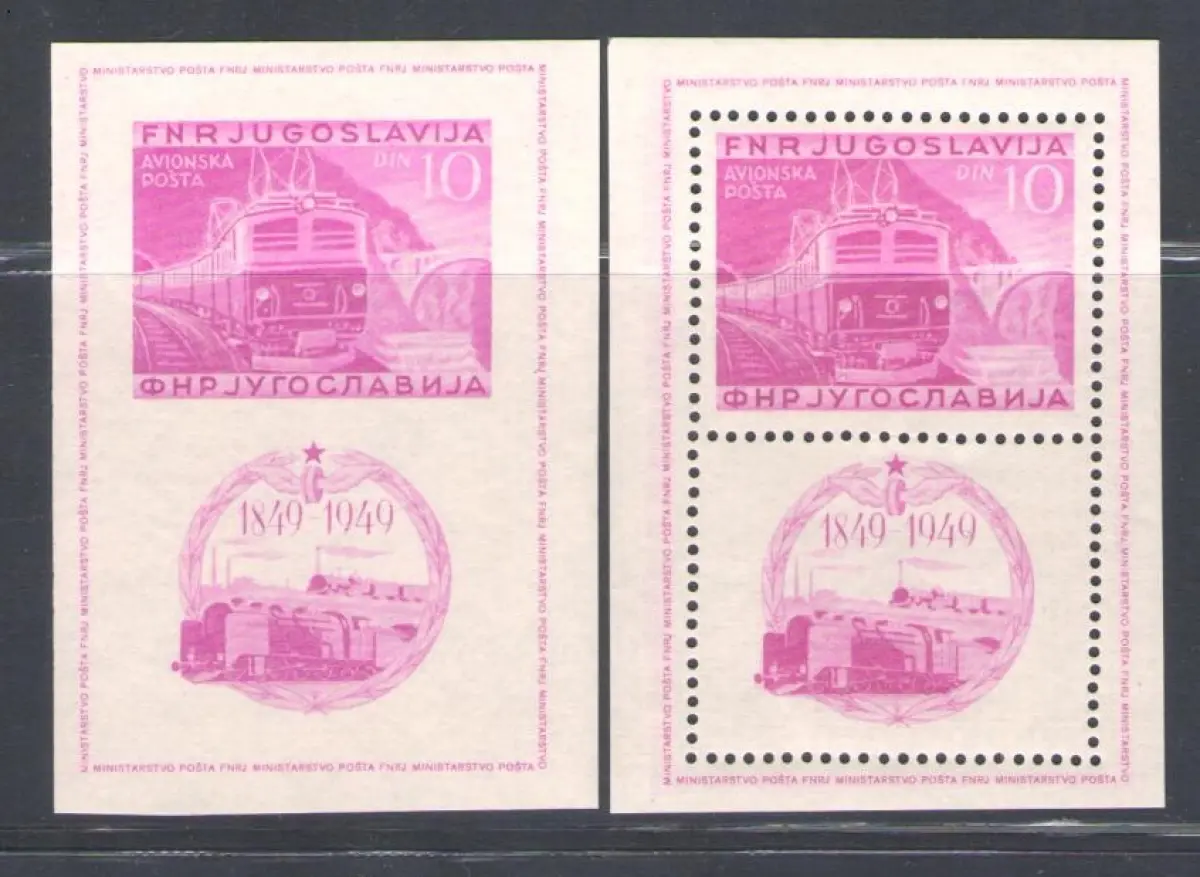 1949 JUGOSLAWIEN - Luftpost - 100 Eisenbahnen - Einheits-Nr. BF 3+3A - MNH ** Einheitskatalog Euro 450 Euro - Grüner Kasten Ausland - 1 Lot Alb Album rot lib hoch