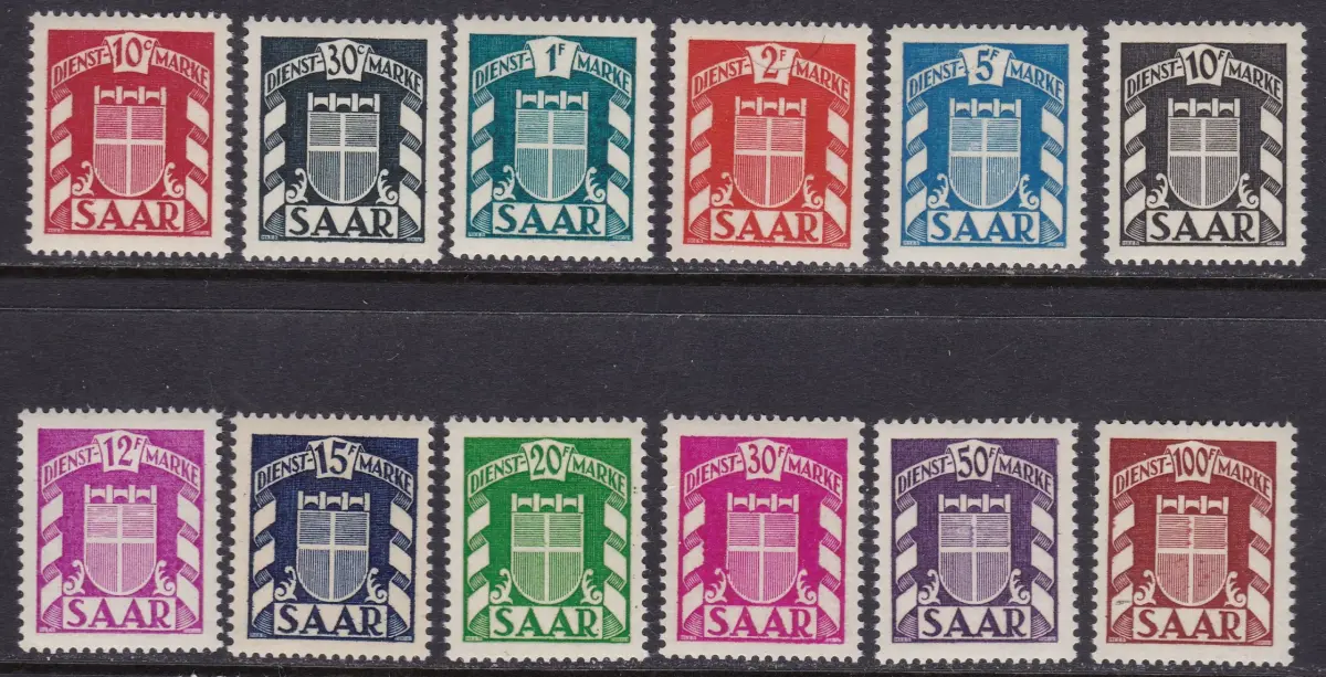 1949 SAAR Dienst Nr. 27/38 12 Werte postfrisch / ** Wappen Einheitskatalog Euro 150 A 3210 rotes Album