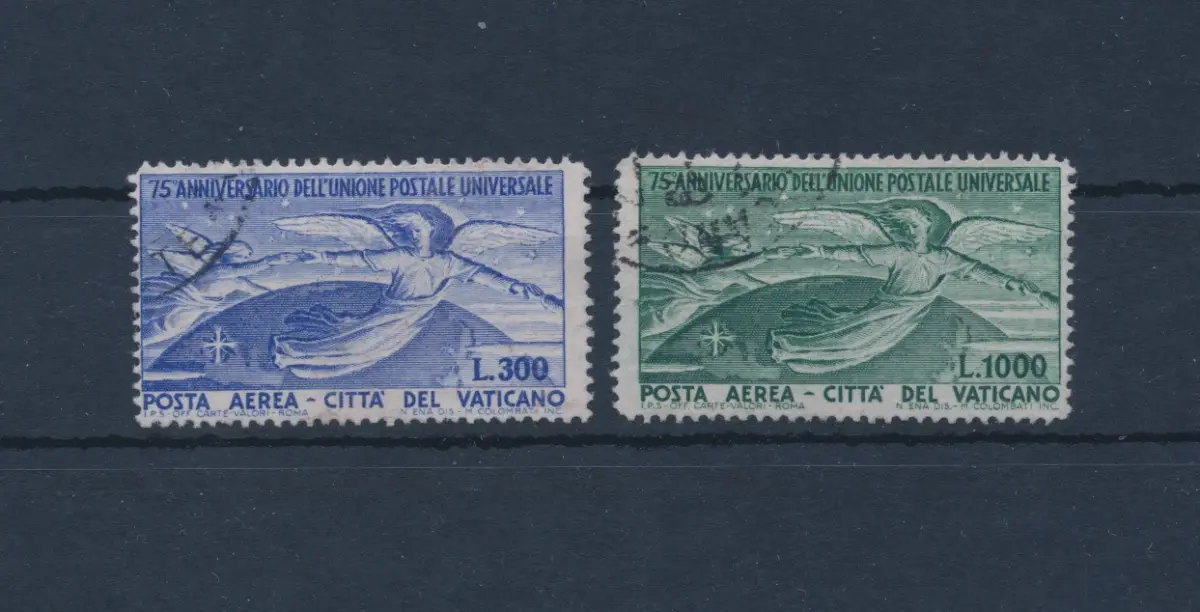 1949 Vatikan, Luftpost, Nr. 18/19, 'Upu-Serie', 2 Werte, gebraucht Sächsischer Katalog Euro 150 Vatikan grünes Album seltene Briefmarken - Gutachtenmarken, Gutachtersignaturen, Diena - Raybaudy - Fiecchi - Historische Urkunden - aufgedruckte Briefmarken