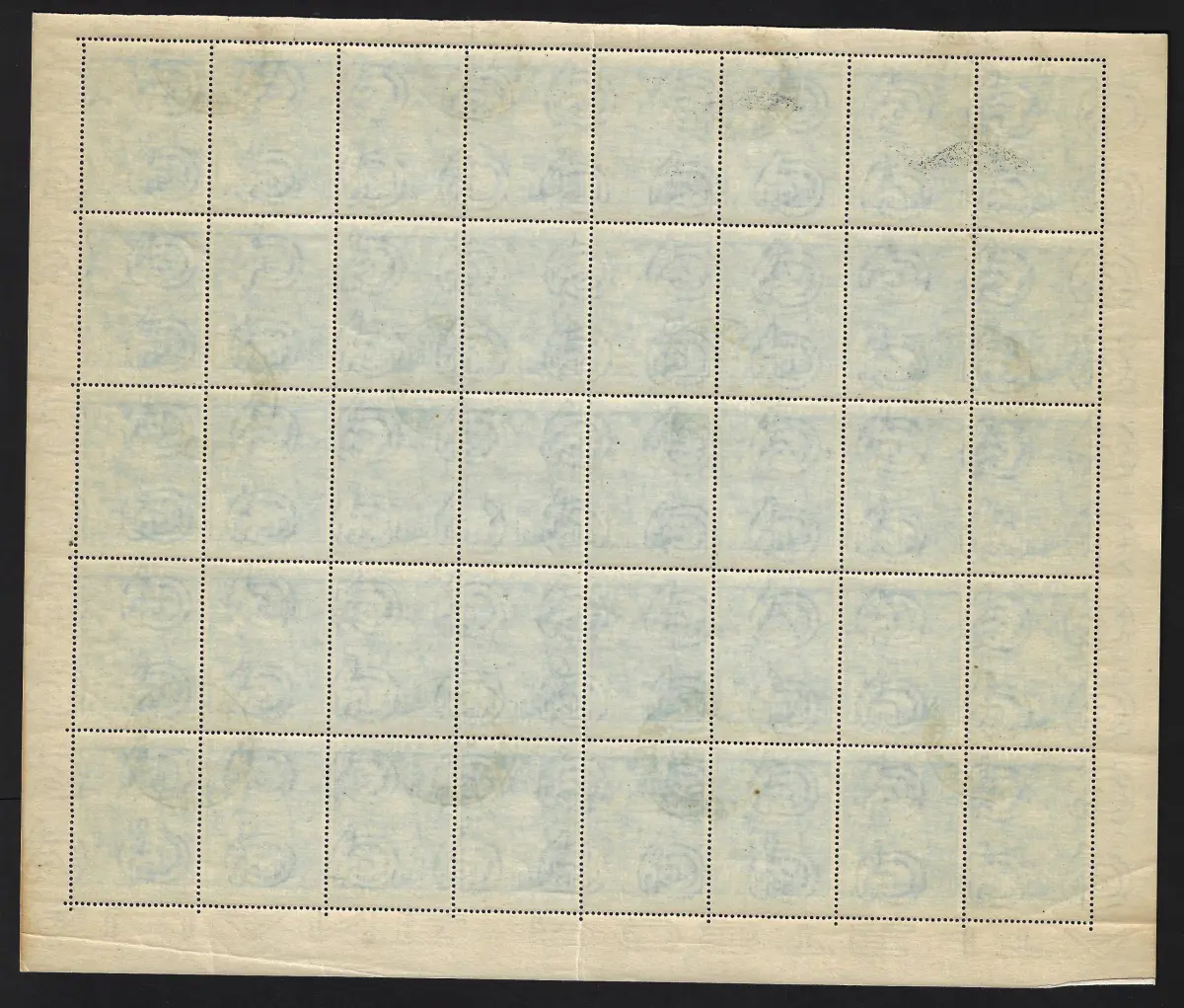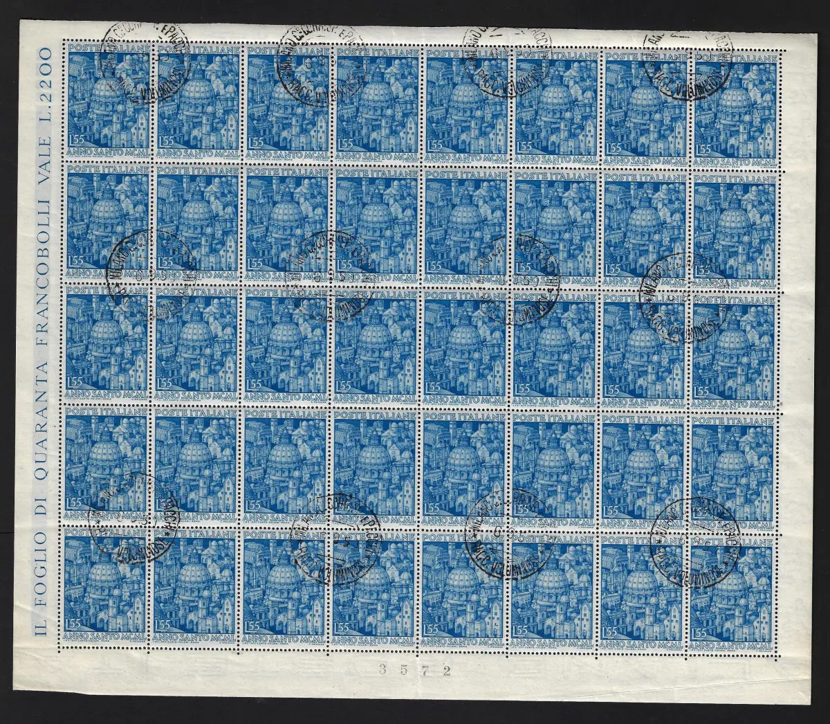 1950 Italien, ganzer gebrauchter Bogen 55 Lire Heiliges Jahr Nr. 621, Vollgummi auf der Rückseite wie gescannt Sächsischer Katalog Euro über 1500 unter Berücksichtigung der gebrauchten Viertel Grüne Mappe niedrige Bücherregal