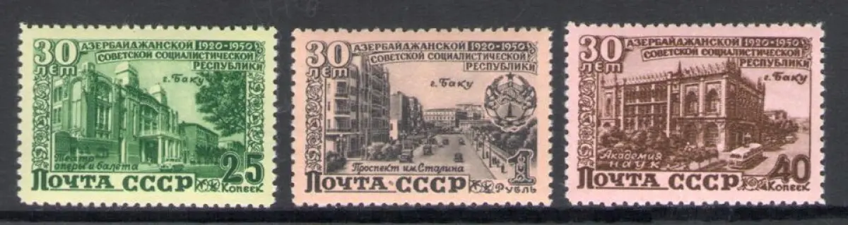 1950 Russland, Aserbaidschan - Nr. 1464/66 - MNH** - Vollgummi und Original Einheitskatalog Euro 40 - Lot 558-11 schwarz
