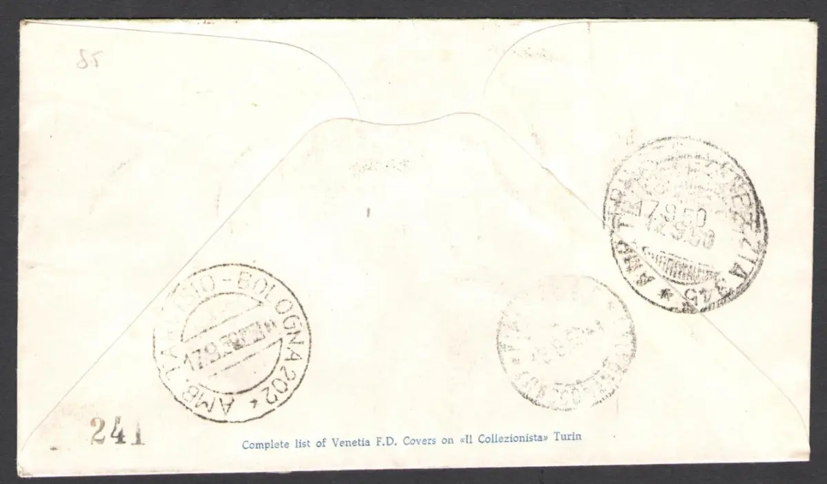 1950 TRIEST A - Tabak auf venezianischem Umschlag Nr. 79 Einschreiben Reise Sächsischer Katalog und Hausliste Euro 110 LOT 30 Schachtel Umschläge Venedig Triest