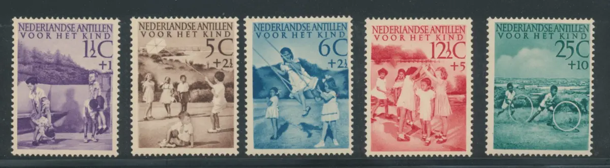 1951 Niederländische Antillen - Profit Kinderwerke - Yvert Katalog Nr. 222/226 - 4 Werte - postfrisch ** Yvert Katalog Euro 55 - Lot 25/1 blaues Album