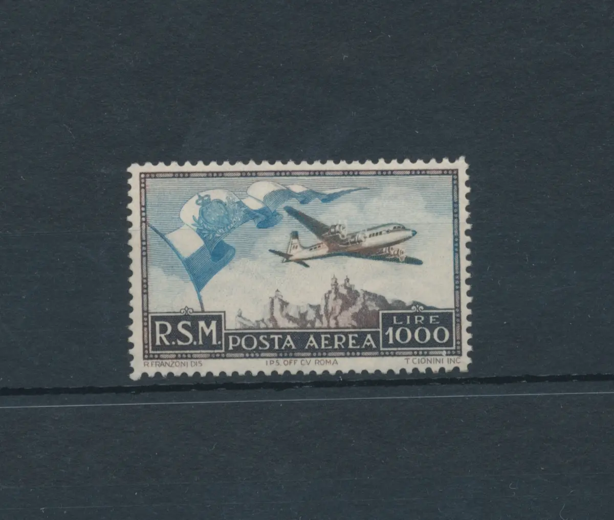 1951 SAN MARINO - Luftpost, Nr. 99, Luftflagge und Ansicht, postfrisch ** Sächsischer Katalog Euro 850 - Album RSM BLAU