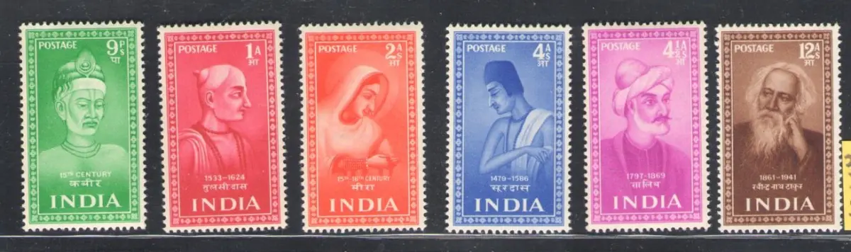1952 Indien - Stanley Gibbson Nr. 337-42 - 6 Werte - Indianer Dichter und Heilige - MNH ** Stanley Gibbons Katalog Nr. - 55 - Lotto 301-2