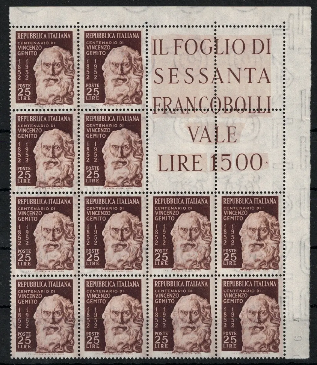 1952 Italien Republik, Eckblock von 12 Gemito Nr. 22, postfrisch **