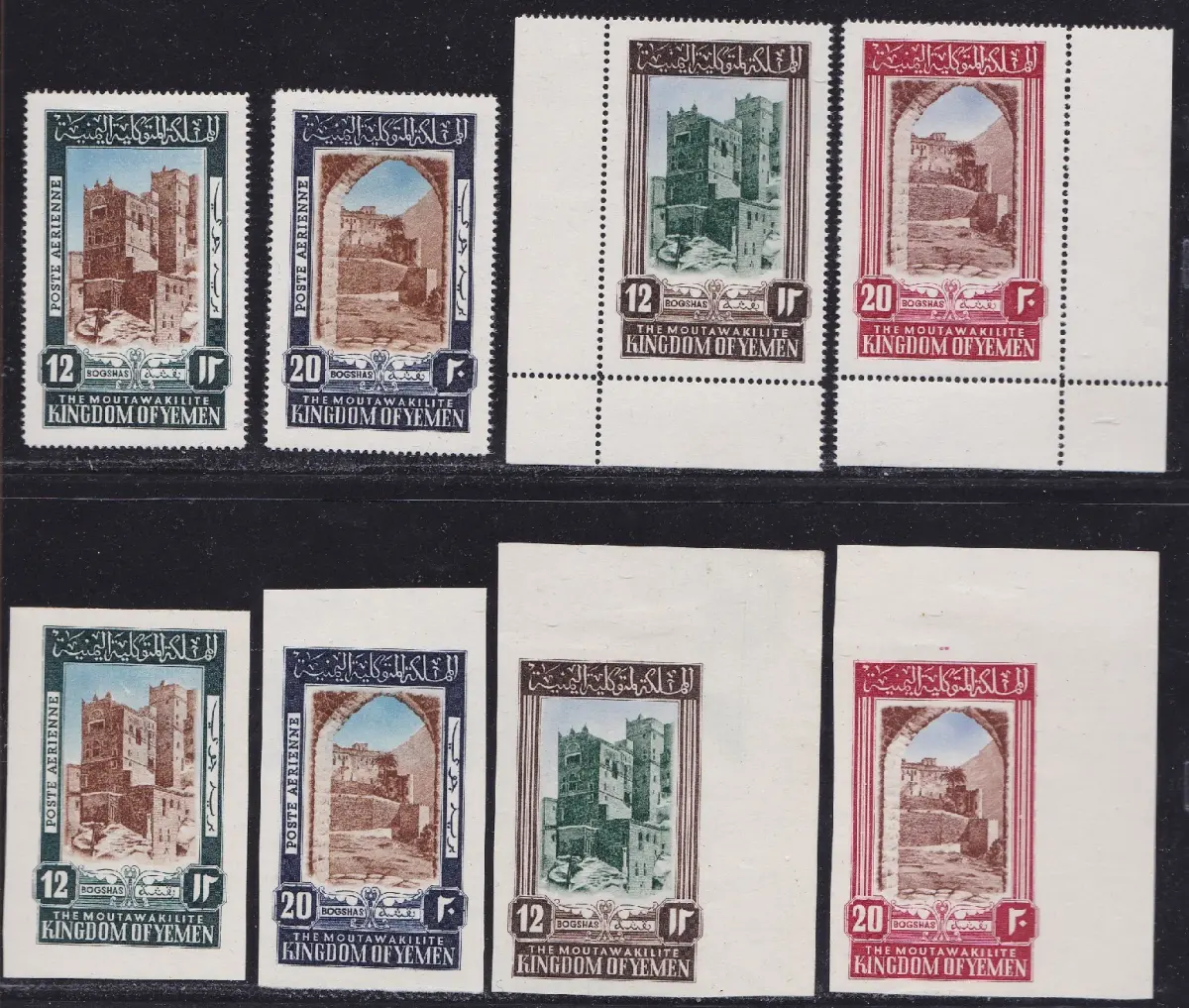 1952 JEMEN (Königreich) - SG 94/97 8 Werte Serie gezahnt und ungezähnt (MNH/**) Felsenpalast, Wadi Dhahr A/M Lot 98