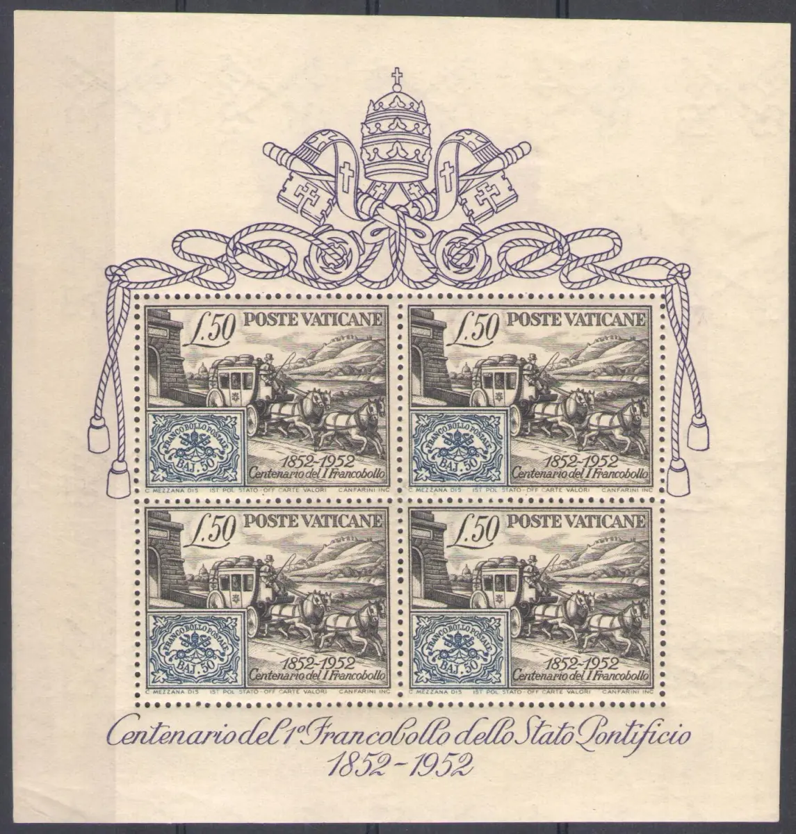 1952 Vatikan, Hundertjahrfeier der ersten Briefmarken - BF 1 - POSTFRISCH **