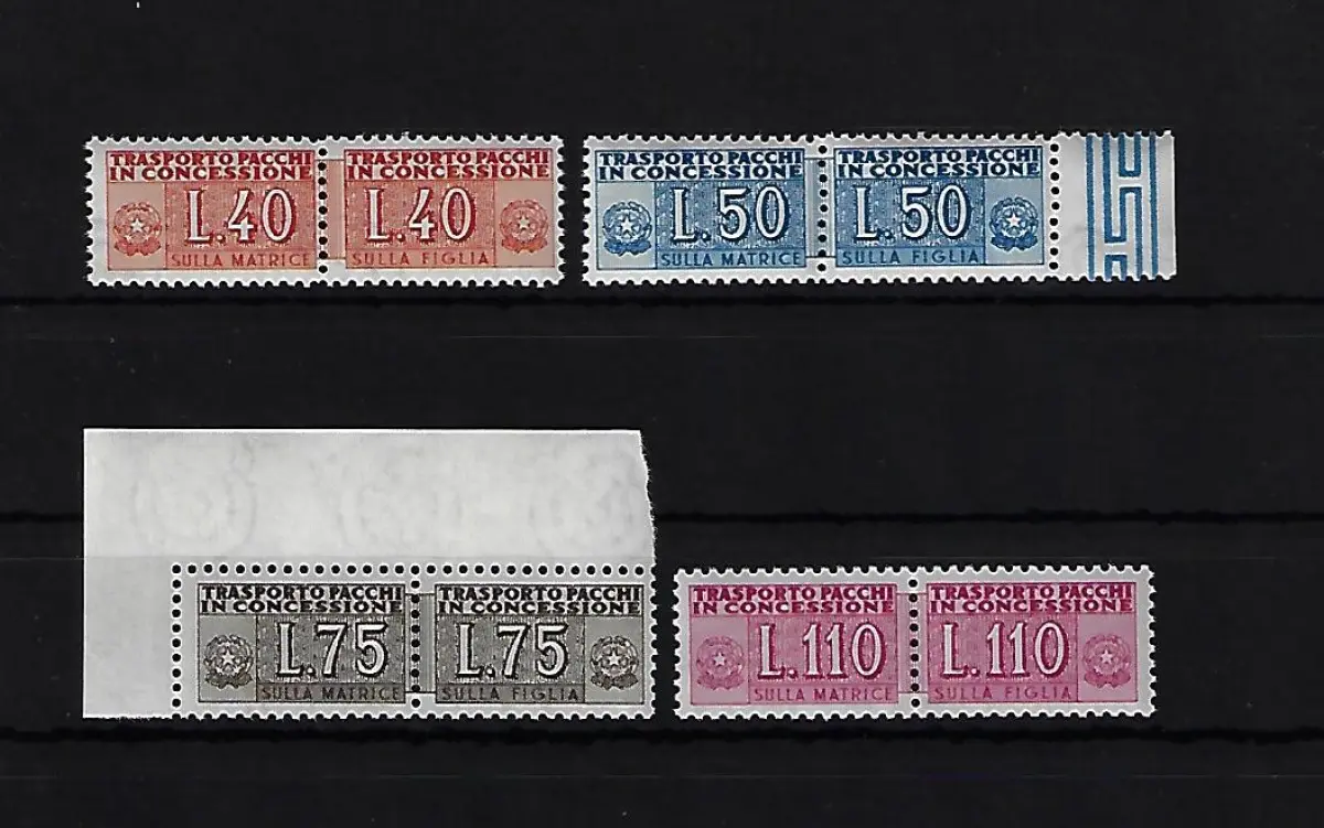 1953-55 Italien Republik, Pakete in Radkonzession, 4 Werte Nr. 1/4, MNH** - Gut zentriert - Filigranes neues Rad, Vollgummi, perfekter Einheitskatalog 2020 Euro