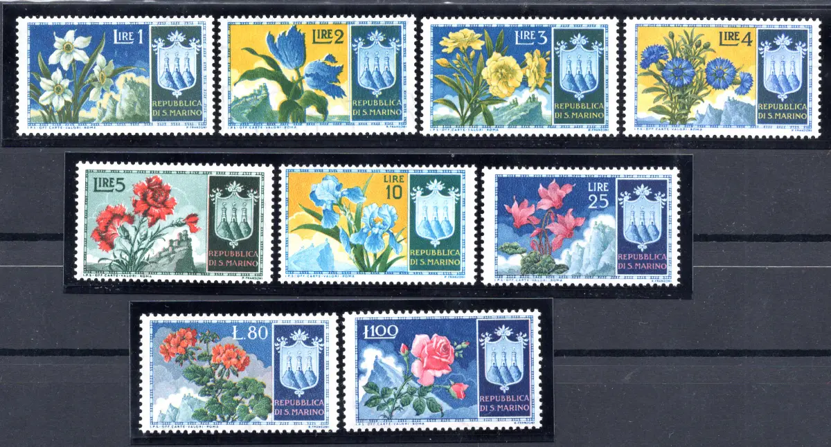 ** MNH - 1953 Blumen I. Ausgabe Nr. 403/408 komplette Serie 9 Werte von ausgezeichneter Qualität und Zentrierung mit Vollgummi Katalog Euro90 Cod.2119/WEB