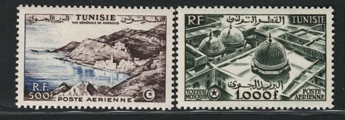 1953 Tunesien, Yvert n. 18/19, Ansichten, Luftpost, postfrisch ** Yvert Euro 115 - grüne Box Länder Afrika