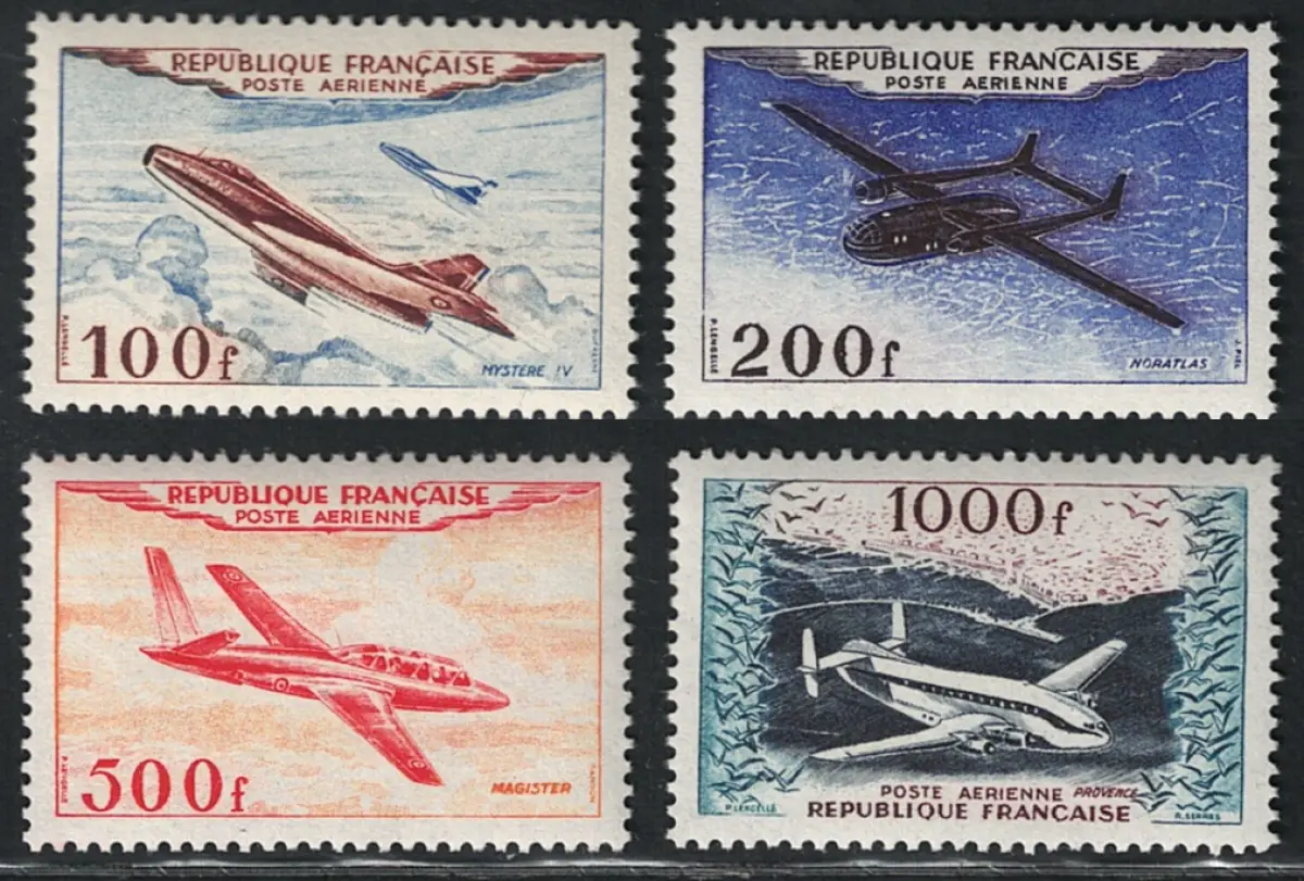 1954 FRANKREICH, Luftpost Nr. 30/33 MNH/** Flugzeugprototypen, 4 Werte Einheitskatalog Euro 400 - Auslandskarton