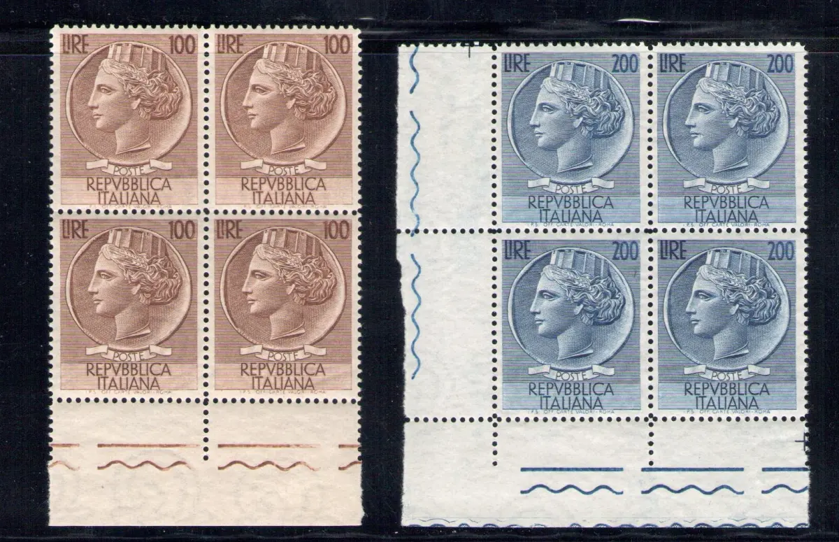 1954 REPUBLIK Syrakus Hohe Werte Wasserzeichen Rad Nr. 747/748 MNH ** QUARTINA, sehr frisch und schön, Vollgummi und Original, gut zentriert (Rand und Winkel des Blattes) Qualitätsbriefmarken wie auf dem beigefügten Scan, Sie erhalten die abgebildeten.