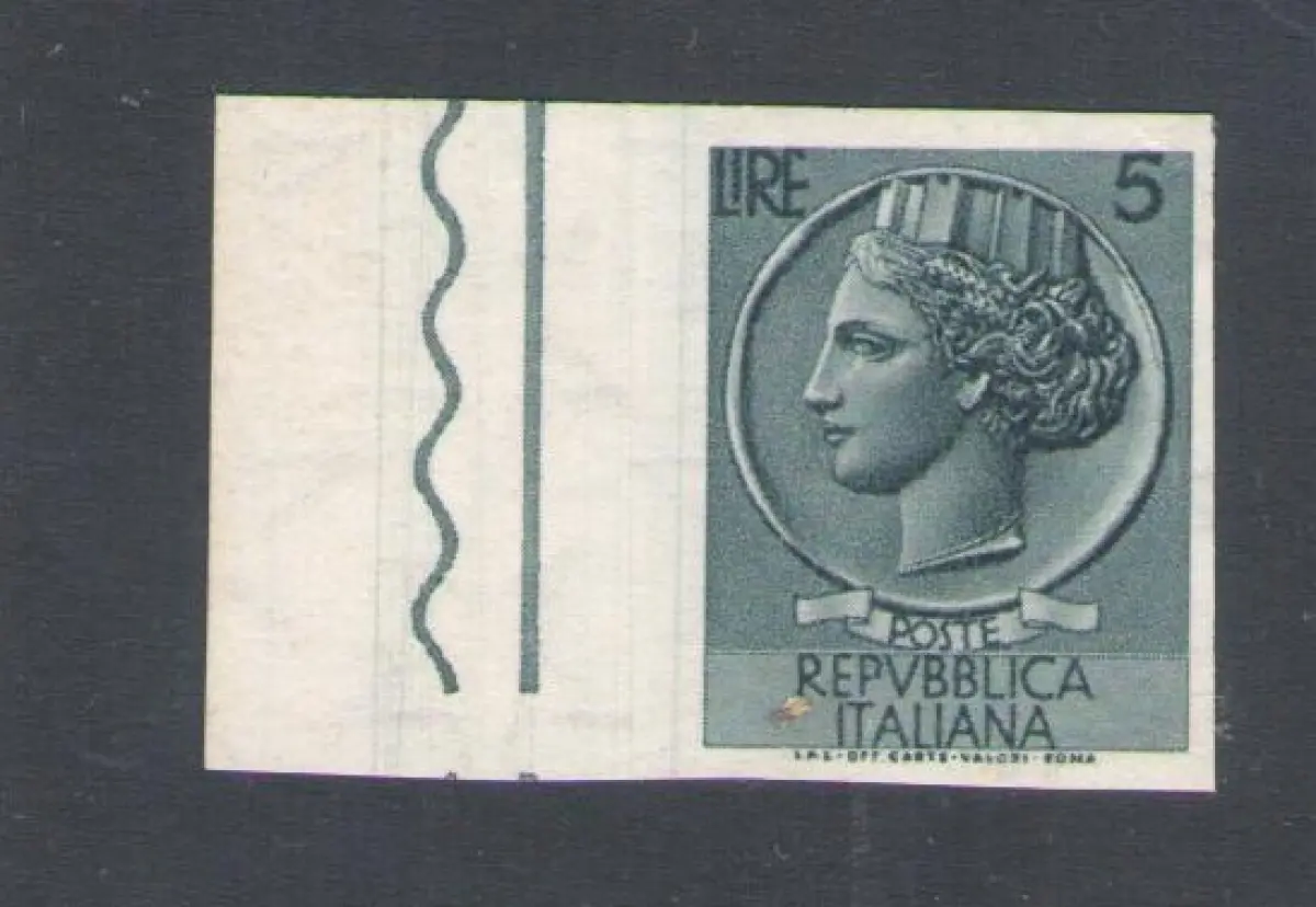 1955-60 Italien, 5 Lire Grau Syrakus ungezähnt, Nr. 761Ba, postfrisch** Einheitskatalog Euro Sortenalbum