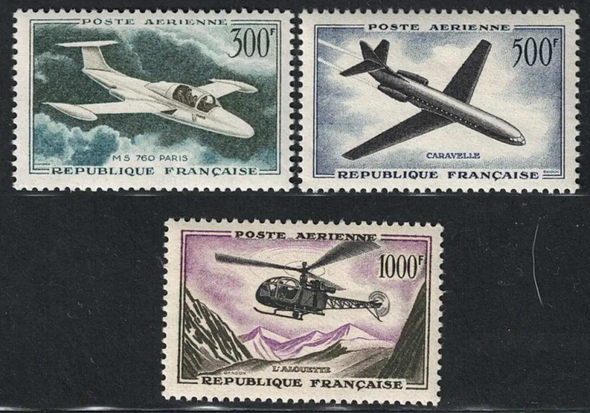 1957-59 FRANKREICH, Luftpost Nr. 35/37 - MNH ** Einheitskatalog Euro 110 - Auslandskarton