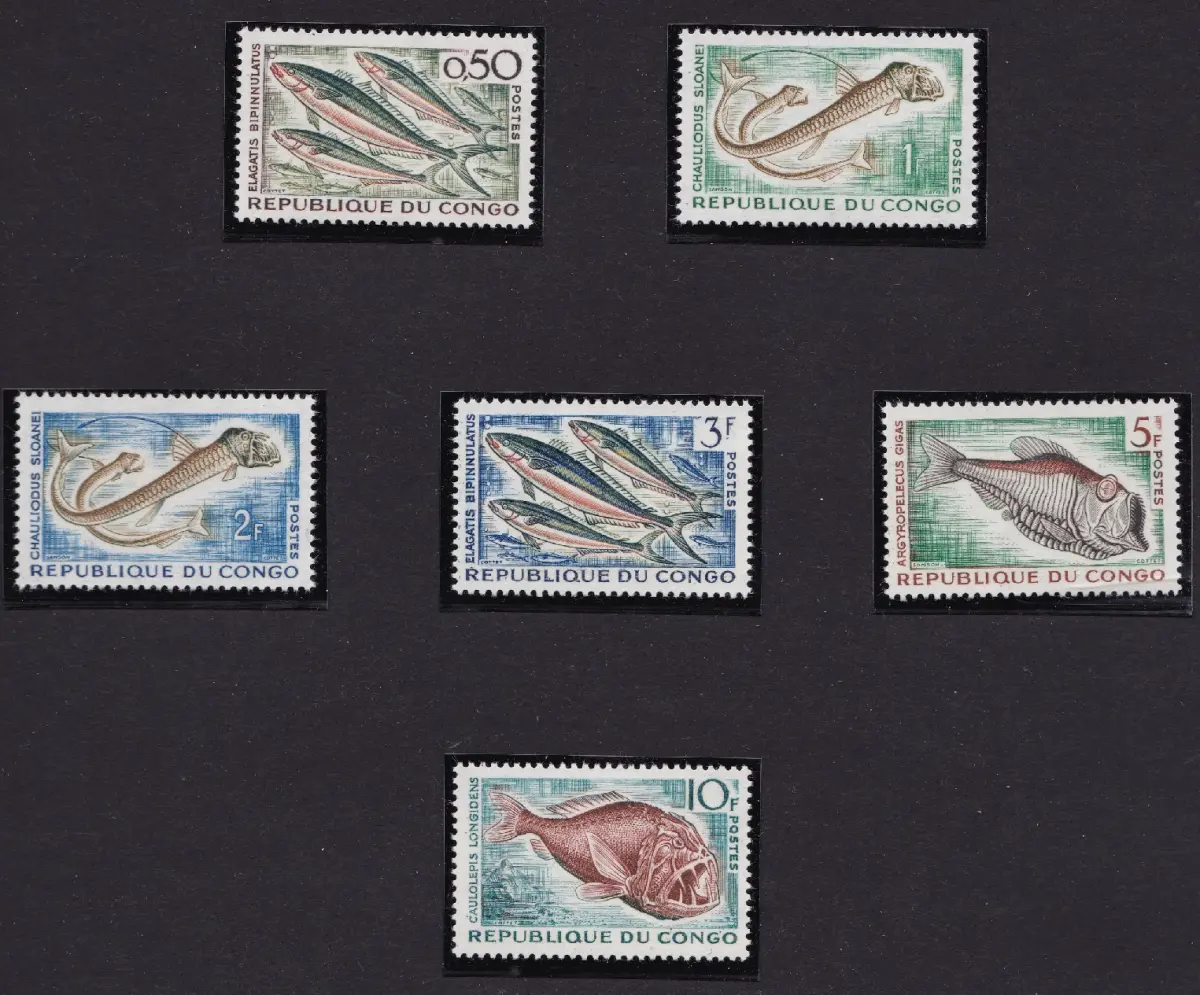 1961-64 KONGO - Yv. n. 142/147A 6 Val. MNH/** Meeresfauna Yvert Katalog Euro 7,50 Thema Lot 92 Album grün