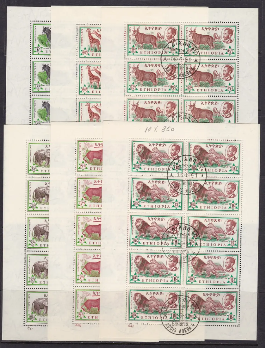 1961 ÄTHIOPIEN - YT Nr. 371/376 Kleinbogen von 10 GEBRAUCHT mit Tischnummer Wildtiere Yvert Tellier Euro 65 A/M Lot 87