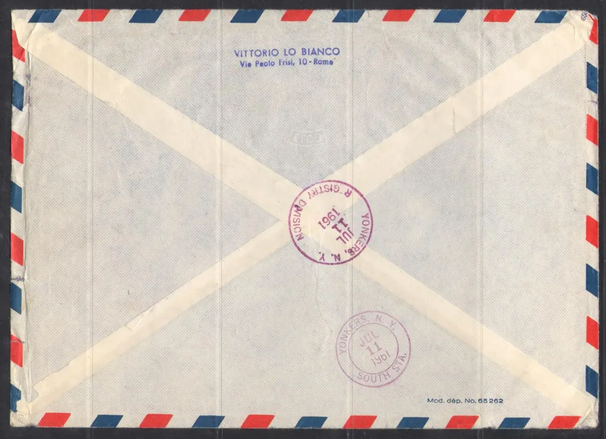 Der Umschlag wird immer mit Briefmarken in Lire oder Euro frankiert, um ein philatelistisches Porto zusammenzustellen.