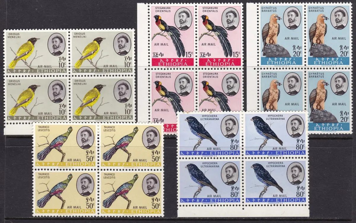 1963 ÄTHIOPIEN - YT PA Nr. 74/78 Serie mit 5 Werten MNH/** VIERTELBLATTRAND Vögel Yvert Tellier Euro 50 A/M Lot 87