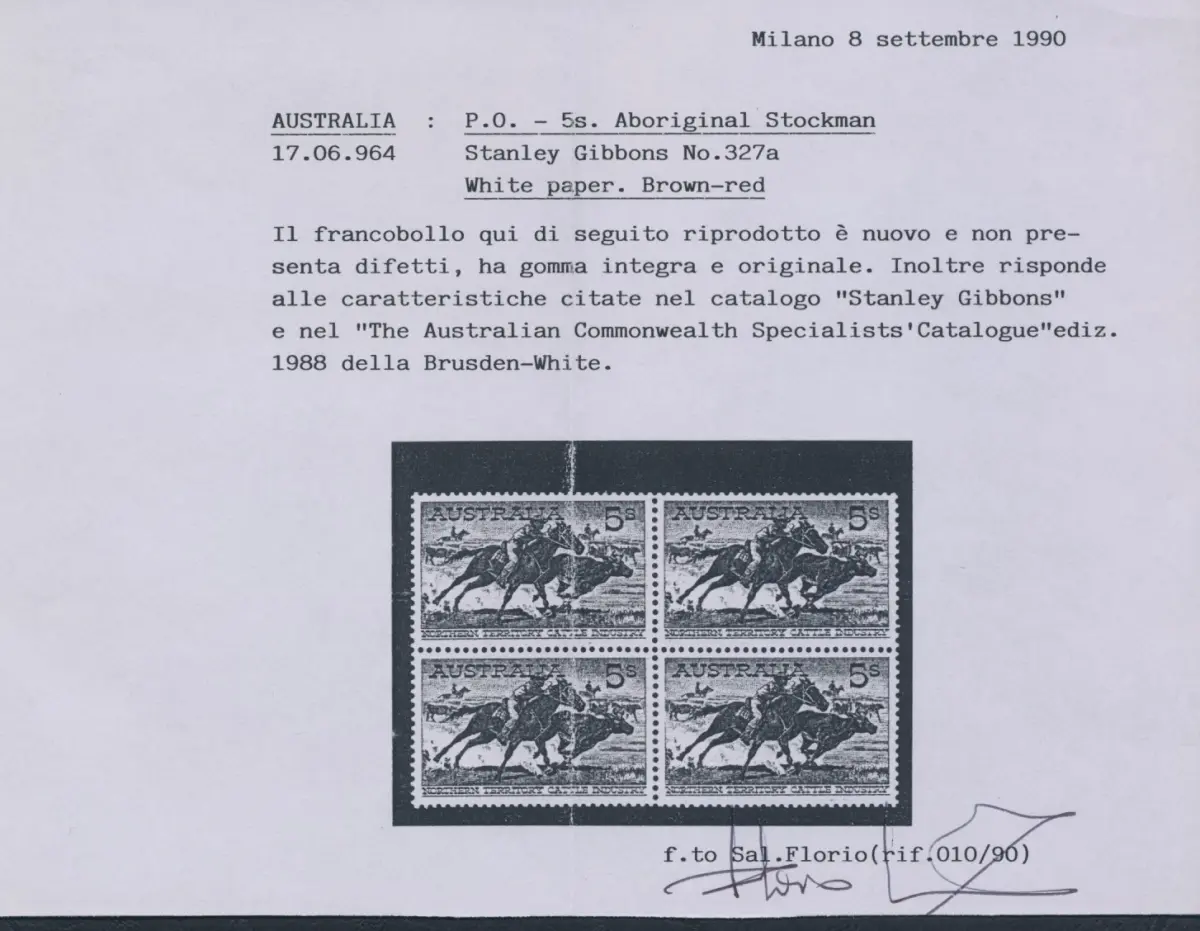 1964 AUSTRALIEN, Nr. 332a Viehzüchter, Splendida Quartina, White Paper, MNH ** A Lot 4 alb rot