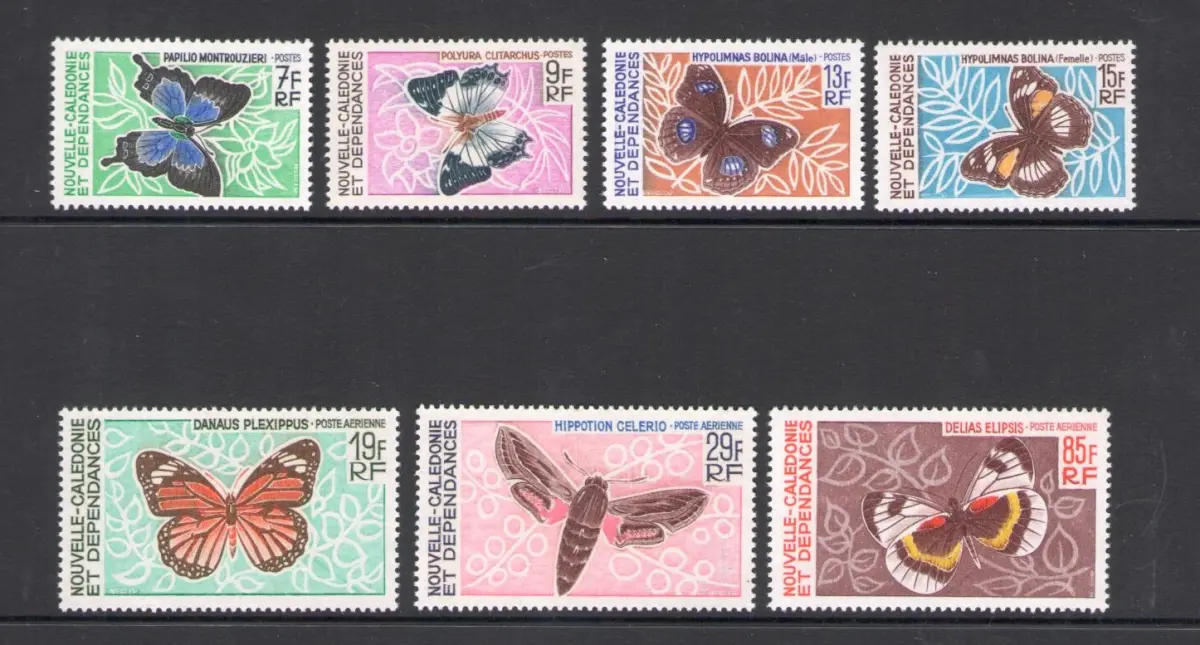 1967-68 Neukaledonien, Yvert # 341-44 + Luftpost # 92-94, Schmetterlinge postfrisch **
