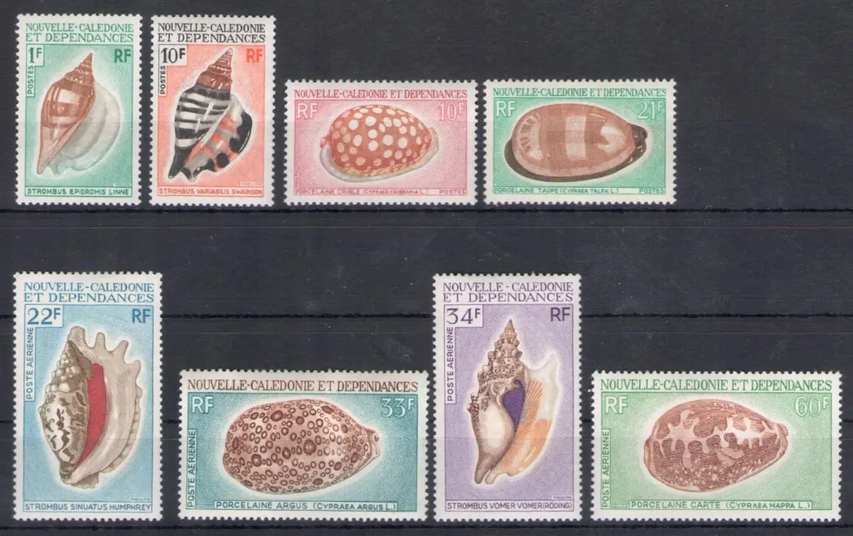 1970-71 Neukaledonien - Yvert Nr. 368/71 + PA 113/16 - Muscheln - MNH ** Yvert Katalog Nr. - Auslandsbox Thema 2 + Lot Französische Kolonien rot