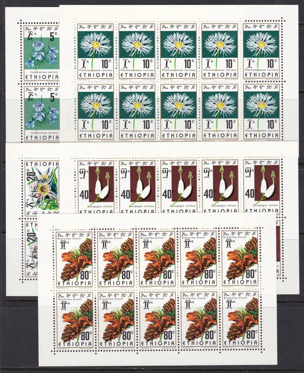 1976 ÄTHIOPIEN/ÄTHIOPIEN - YT Nr. 763/767 Serie 5 Werte MNH/** MINIBOGEN MIT 10 Blumen Yvert Tellier Euro 55 A/M Lot 87