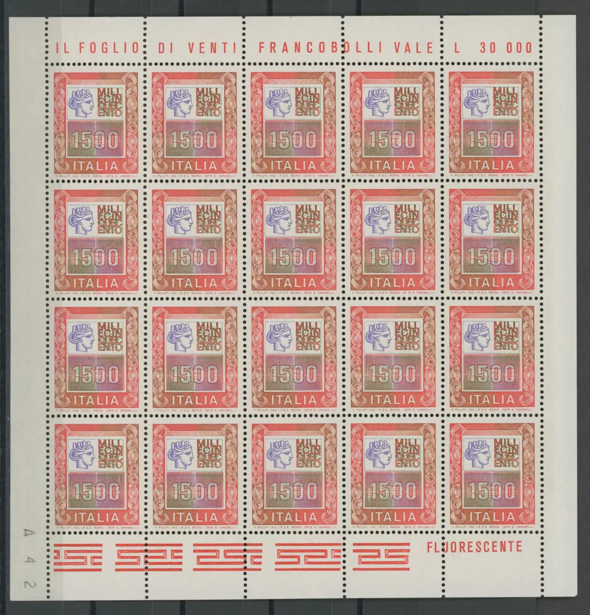1978-79 Italien - Republik, Nr. 1438, 1500 Lire polychrom, im Kleinbogen von 20, MNH ** NEU MIT VOLLGUMMI IN EINWANDFREIEM ZUSTAND.