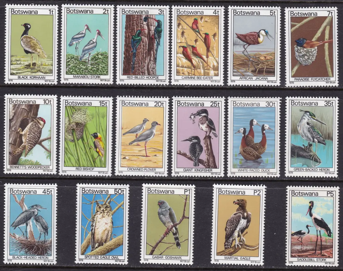 1978 BOTSWANA - YT 350/366 Satz mit 17 Werten MNH/** Vögel, komplette Serie Yvert Katalog Euro 63,30 Thematik