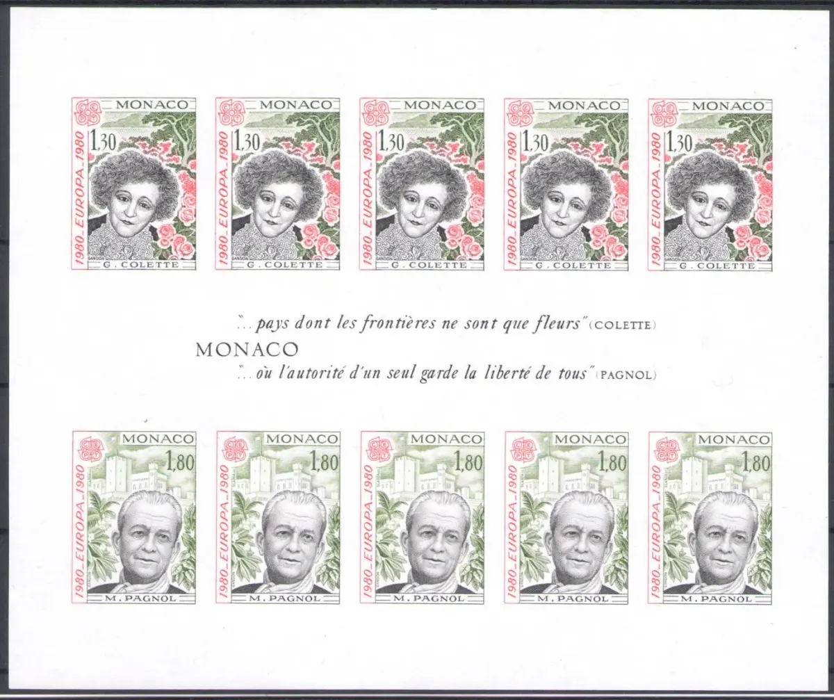 1980 Monaco, Yvert 13a - Europa Cept Bogen - Ungezähnt - MNH ** Yvert Katalog 540 Euro Auslandskarton