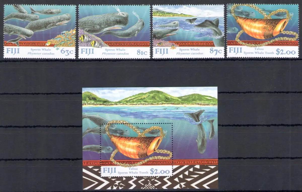 1998 Fidschi, Wale und Delfine - Nr. 844/47 + BF 28 - MNH** - Original- und Vollgummi Einheitskatalog Euro - Box 2 Themen