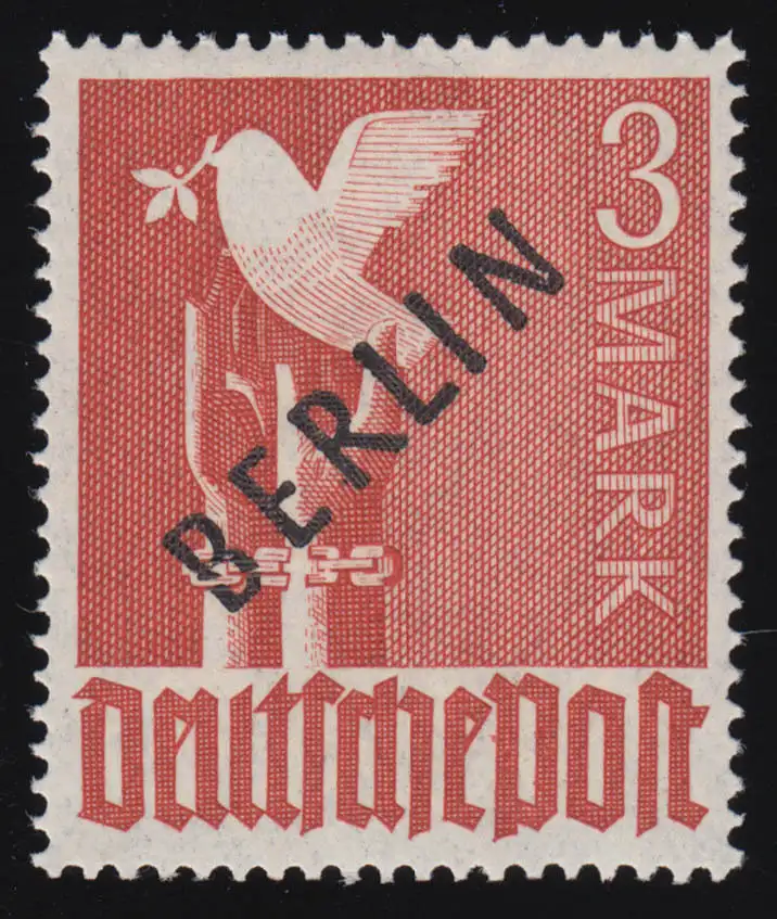 19X Schwarzaufdruck 3 Mark PLF X - zwei Brüche im B von BERLIN, ** gpr.