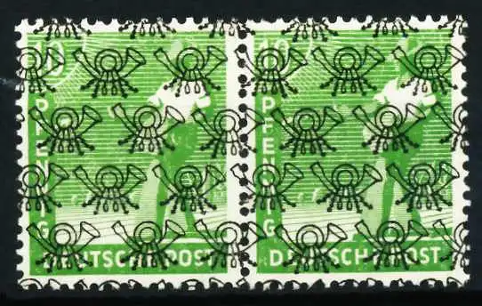 10 Pfg Wert aus der 2. Kontrollratsausgabe mit Netzaufdruck Posthörnchen