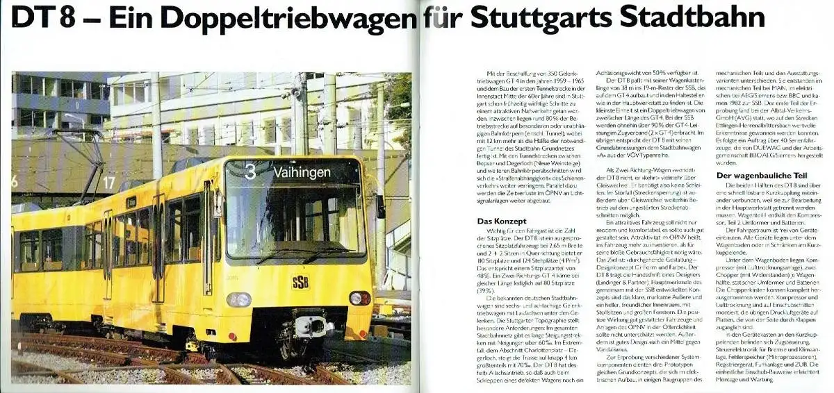 sehr guter Zustand, geringe Gebrauchs- und Alterungsspuren, Stadtbahnbau in Stuttgart und der DT8 Doppeltriebwagen für Stuttgarts Stadtbahn - Der neue Stadtbahnwagen stellt sich vor, mit einem Netzplan, Softcover, ca. 21 x 20 und 13,5 x 20, zusammen 42 Seiten mit einigen Bildern