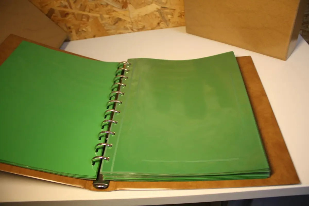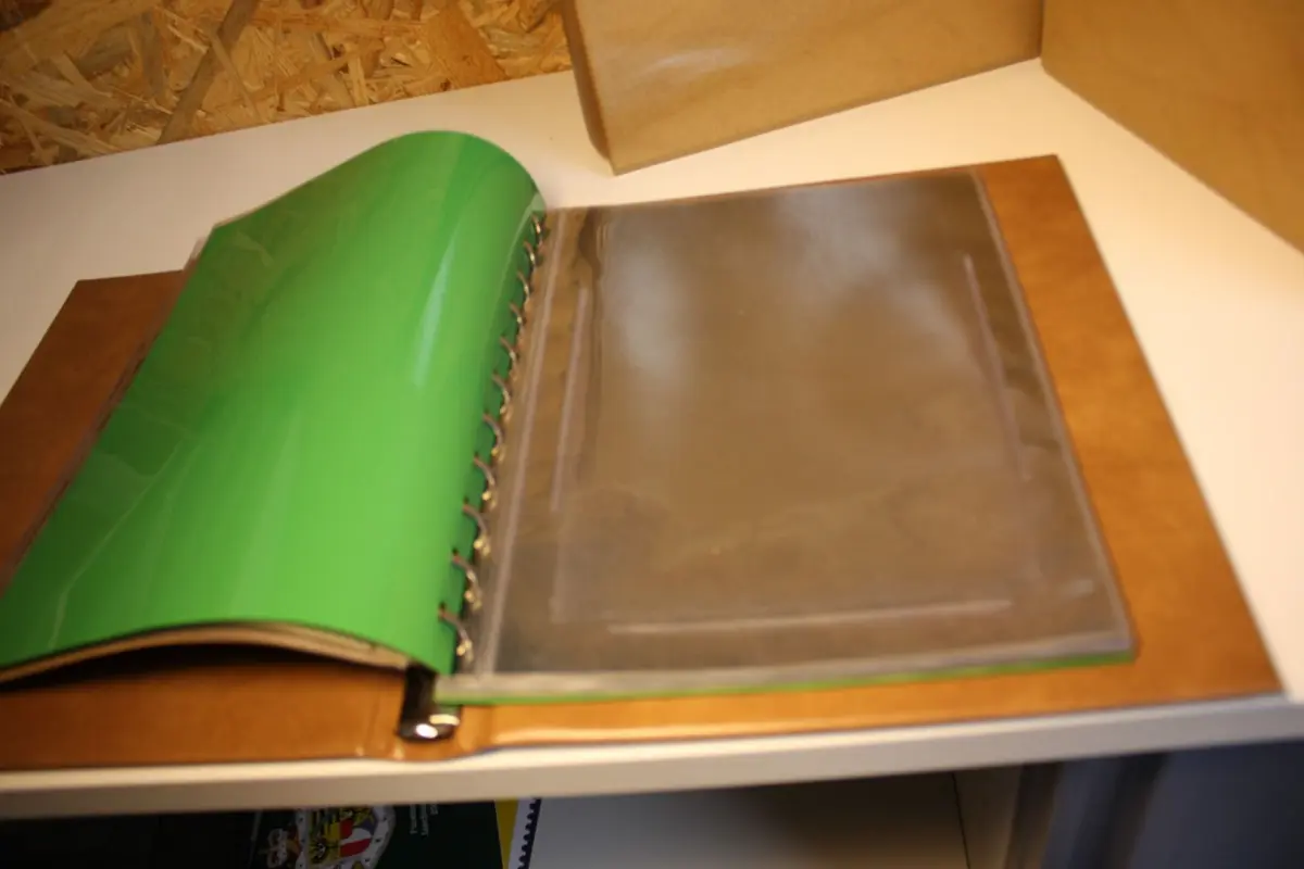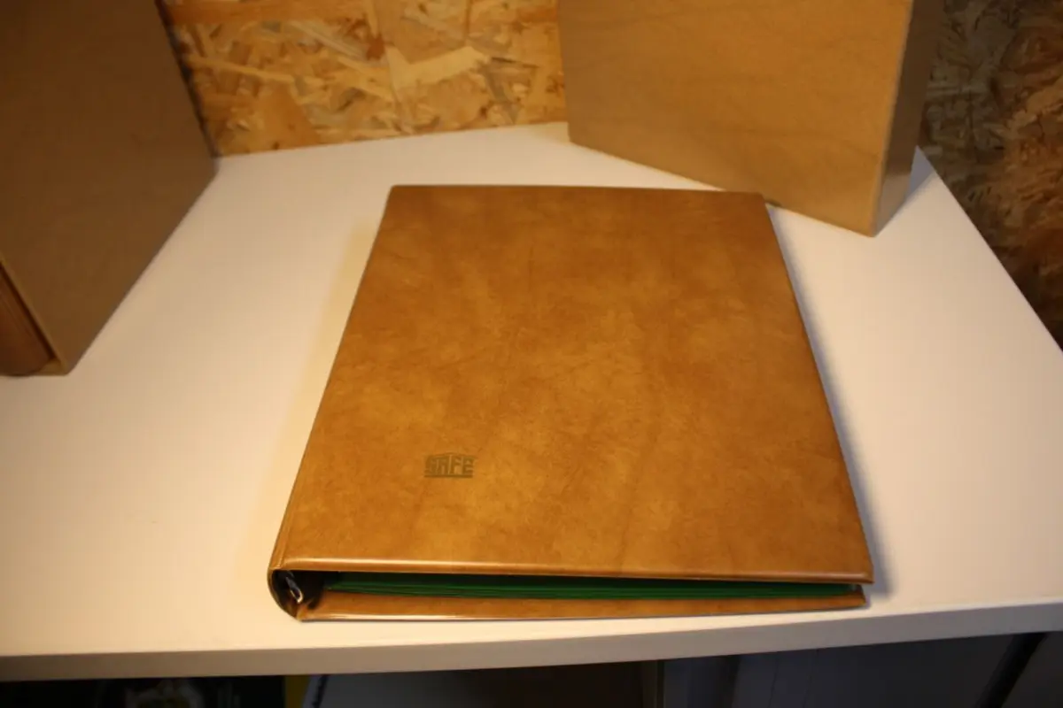leere gut erhaltene Alben + Schuber mit Gebrauchsspuren, jedes Album mit insgesamt 60 Hüllen für ETB + grüne Zwischenblätter, Hüllen können leicht gelblich sein, 1 Blattheber fehlt