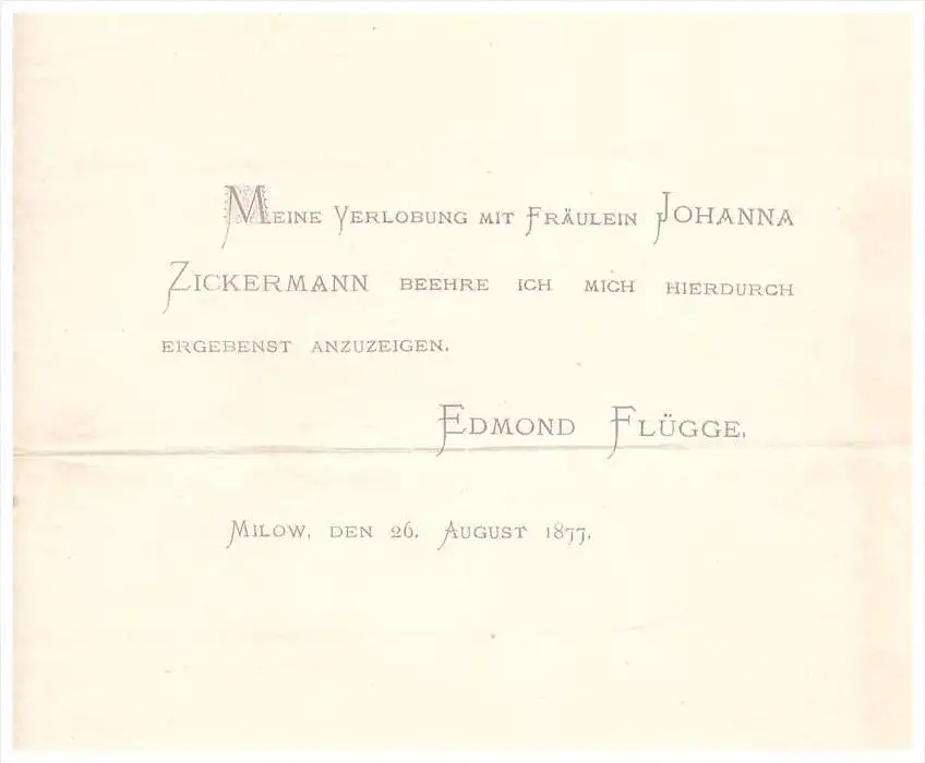 2 Schreiben von 1877 - F. Flügge zu Milow / F.